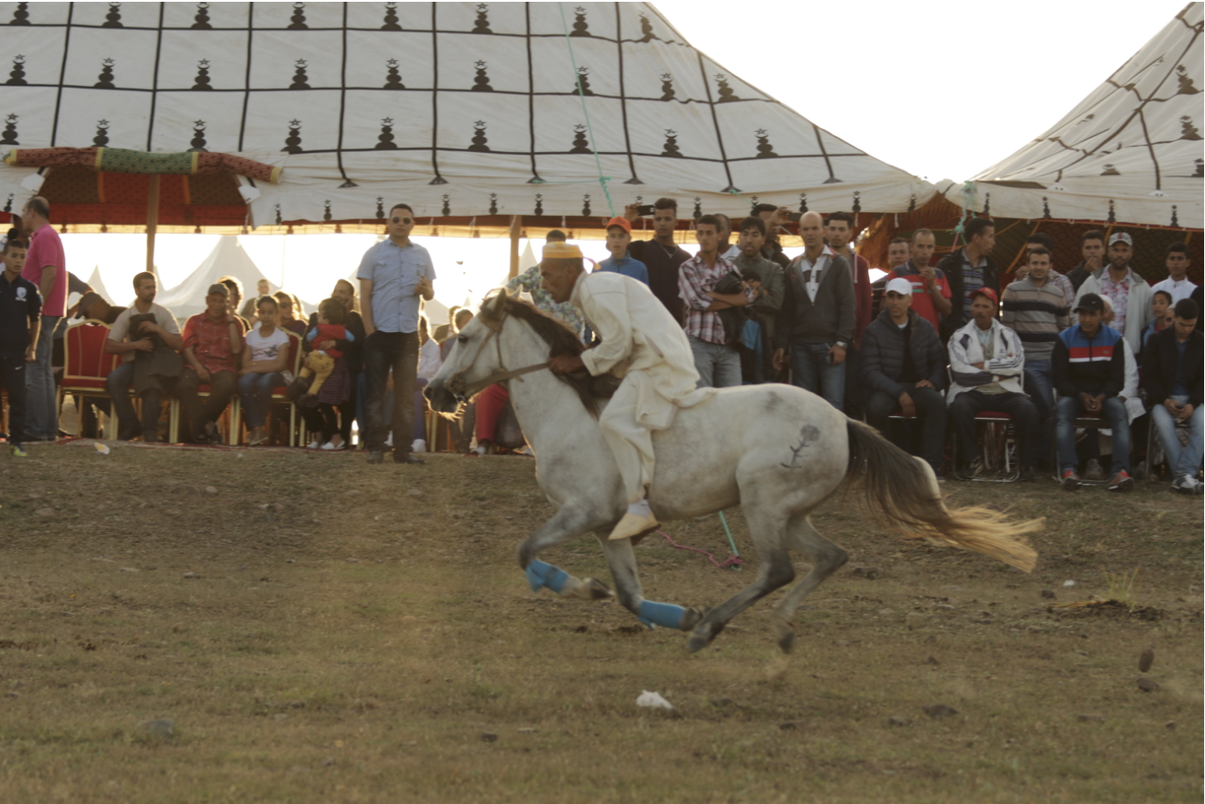 In a place that can only be called the remote plains of northern Morocco, a festival of a unique game on horseback takes place every year. Arab tribes from the north gather to play a game similar to "capture the flag," but on horseback with the goal being to capture a puppet. They call this game mata.