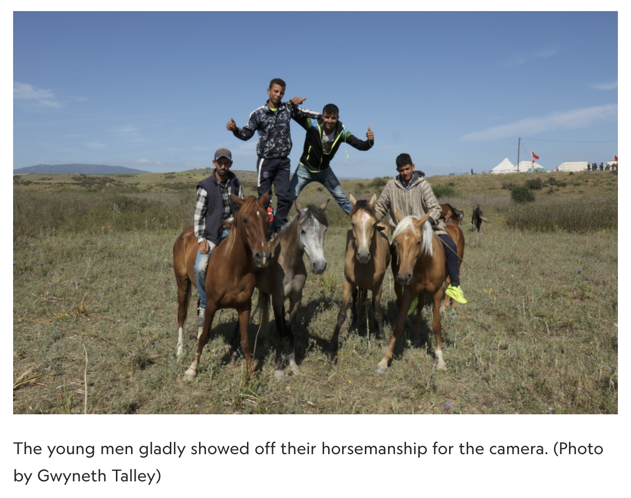 Bareback horse racing competition similar to buzkashi in Morocco. May 2016. Photo by Gwyneth Talley